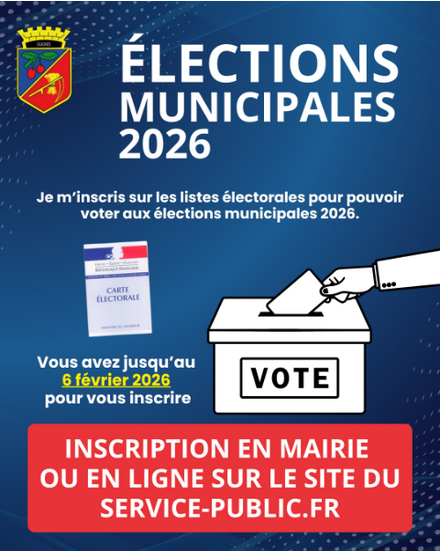 Vous avez jusqu’au 06 février 2026 pour vous inscrire en mairie en déposant les formulaires d’inscription suivants : cerfa_12671-02 ou cerfa_12669-02